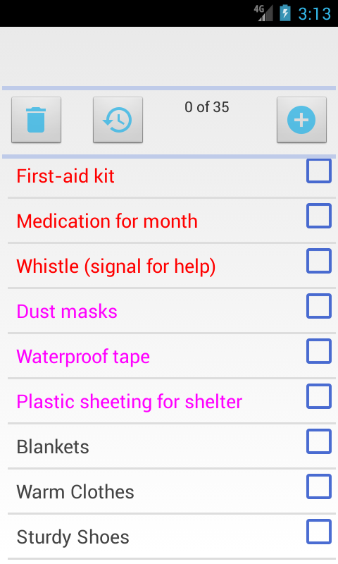 items like: flashlight, food, water etc...