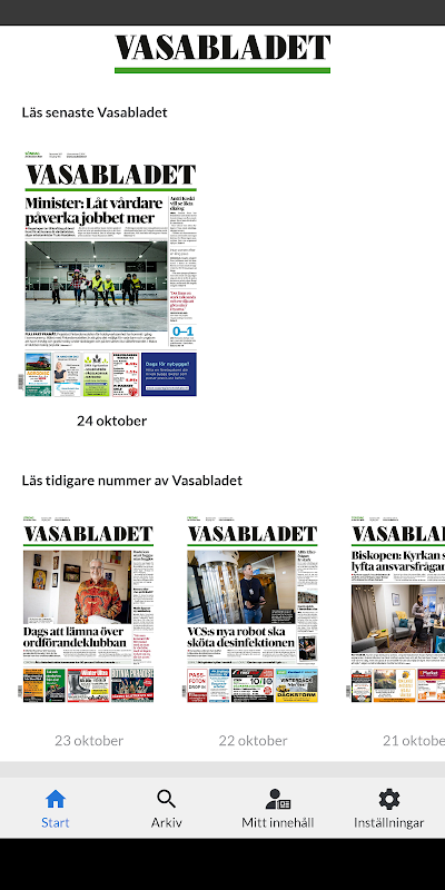 Nell'app di Vasabladet puoi leggere l'e-magazine che viene pubblicato tutti i giorni della settimana, anche il lunedì! L'e-magazine VBL Måndag è pubblicato solo in formato digitale ed è progettato esclusivamente per essere letto nell'app.