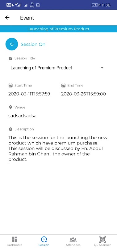 Desideri utilizzare un'app per controllare il check-in per la gestione degli eventi? Questa app semplificherà la gestione degli eventi integrando il check-in e il check-out QR Scanner. Puoi facilmente scansionare il codice QR dal biglietto dell'ospite dell'evento e acquisirà i dati dell'utente per il check-in all'evento registrato. Puoi anche effettuare il check-in dell'ospite con ciascuna sessione dell'evento. Dopo l'evento puoi anche controllare l'ospite come hai fatto il check-in.