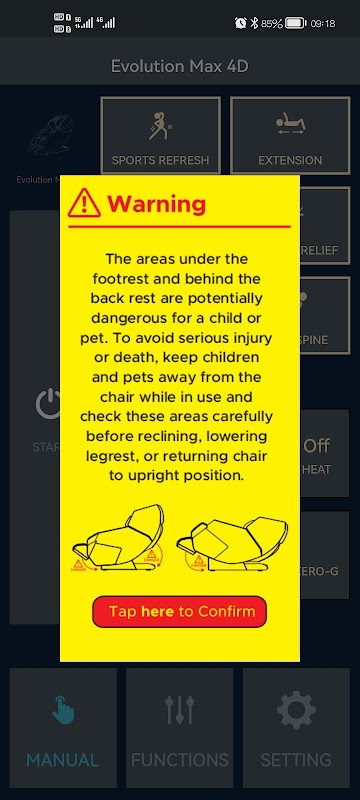L'app mobile per poltrone da massaggio Evolution Max 4D.