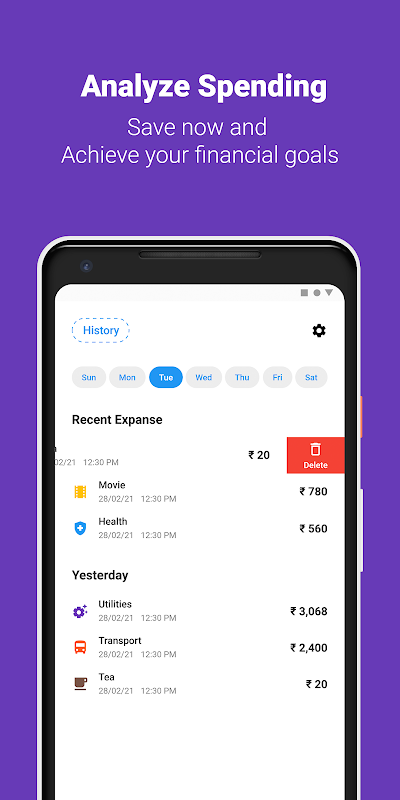 Expense manager è un'app di monitoraggio del denaro che gestisce i record di spesa con un solo tocco. Questo ti aiuterà a gestire le tue finanze e ti limiterà a giocare solo con il tuo budget.