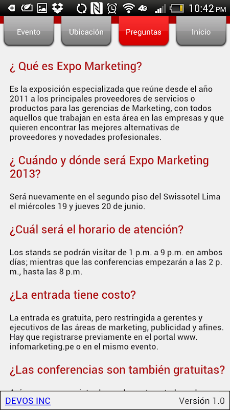 Aplicación para acompañar el evento Expo Marketing 2013.