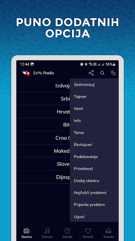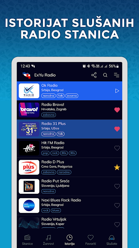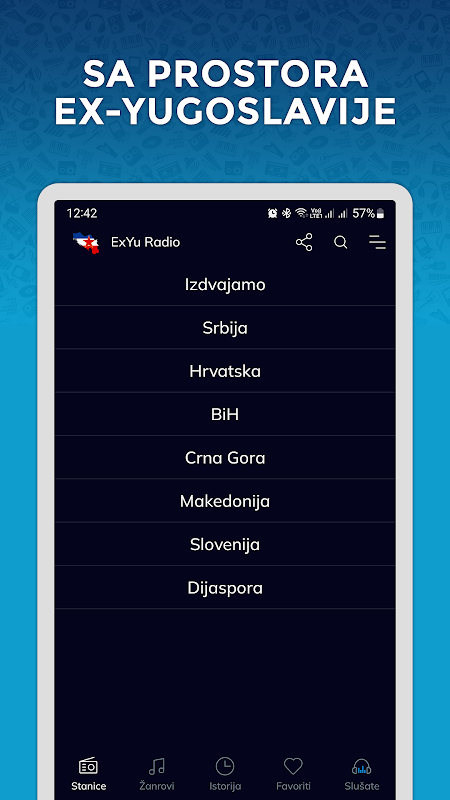 Slušaj radio stanice iz Srbije, Hrvatske, Bosne, Crne Gore, Severne Makedonije, Slovenije e dijaspore preko nove app Ex Yu Radio.