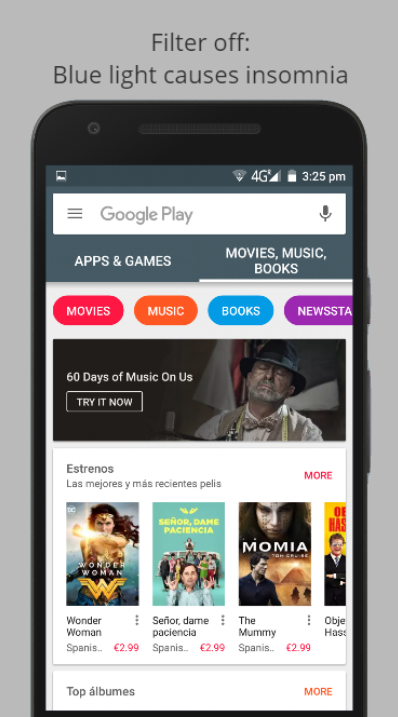 ● Filtrare lo schermo durante la notte evitando le tonalità di colore che causano l'insonnia