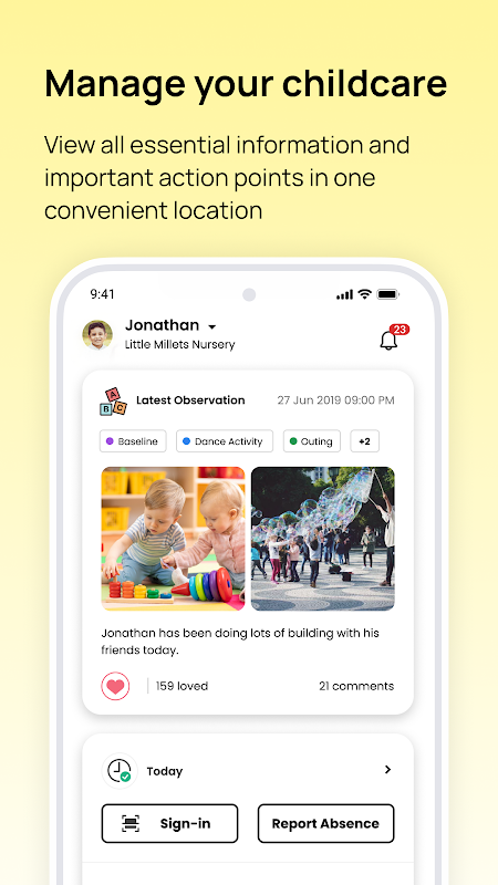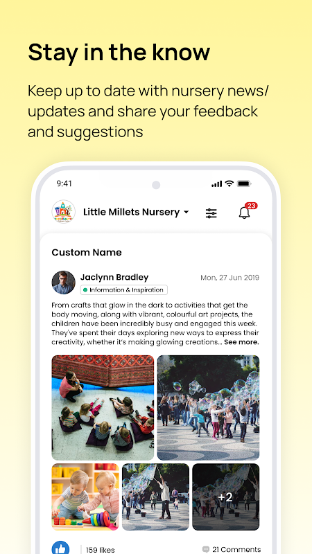 Aggiornamenti dalla scuola materna di tuo figlio a portata di mano.