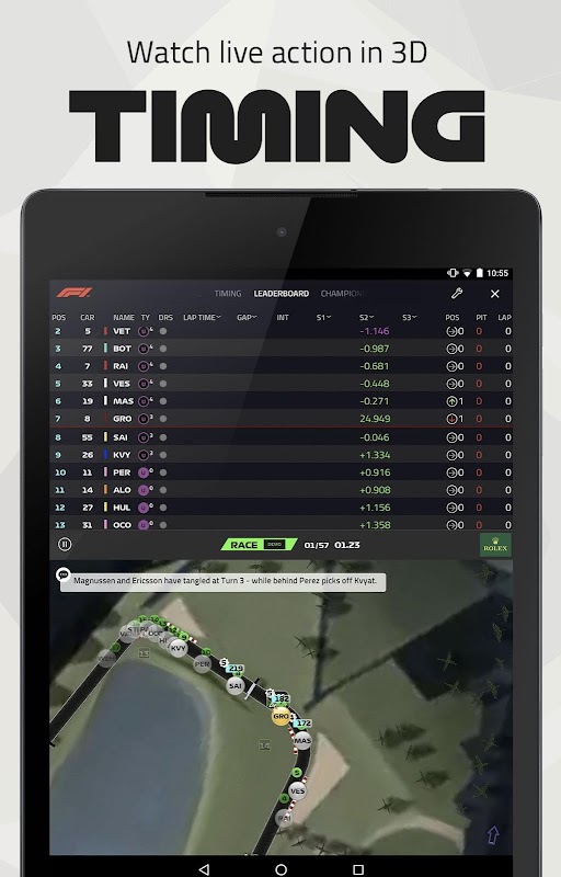 The full Live Timing features are back in a separate app available on Android phones and tablets so you can follow every twist and turn of the live races.