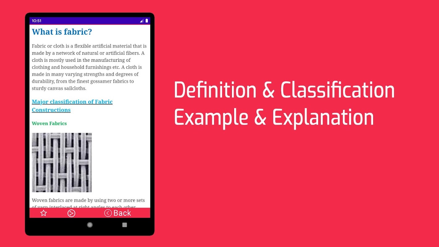 Fabric engineering is an educational application. If you are looking for Fabric engineering tutorial so you are in a right place. This app will provide you most important chapters. This Fabric engineering app will give you definition and classification.