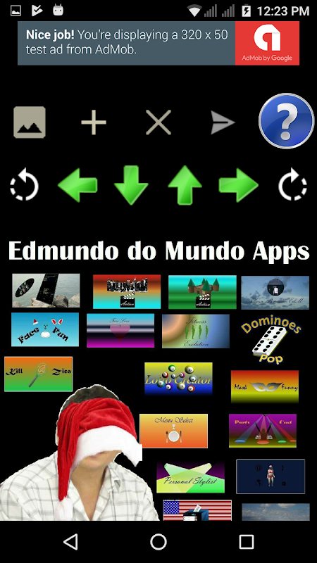 Create funny pictures with your photos, you can add other pictures above his face creating cool pictures. First you add the background photo, then add photo above (+ icon), drag to adjust the position of the photos if needed. To remove a photo, use (X icon), and if you want you can post.