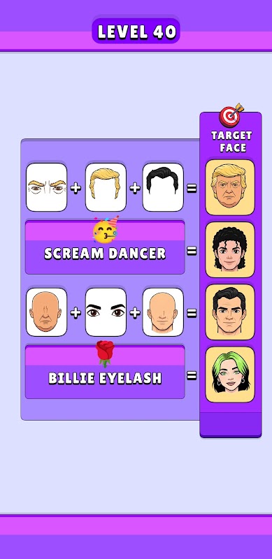 Con controlli intuitivi, immagini vivaci e meccaniche di costruzione del volto soddisfacenti, Face Master è perfetto sia per i giocatori occasionali che per gli amanti dei puzzle 🧩