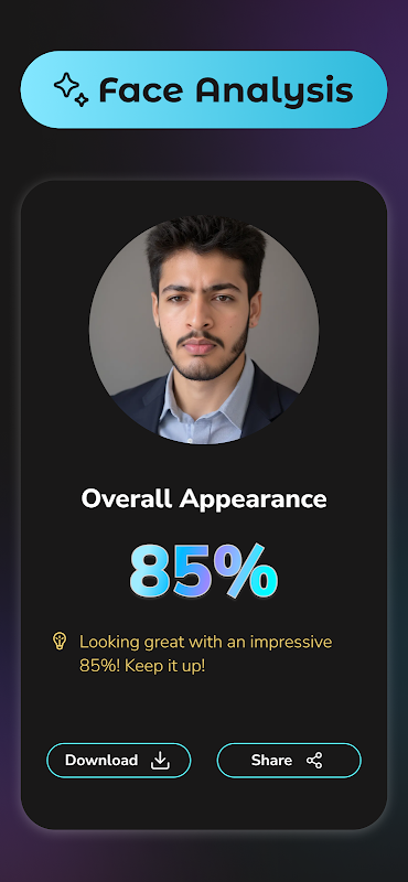 ✔ Ottieni una valutazione facciale personalizzata basata su algoritmi AI avanzati