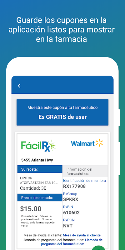 Para obtener el precio con descuento, simplemente muestre su cupón al farmacéutico y ellos usarán sus detalles para procesar su receta.