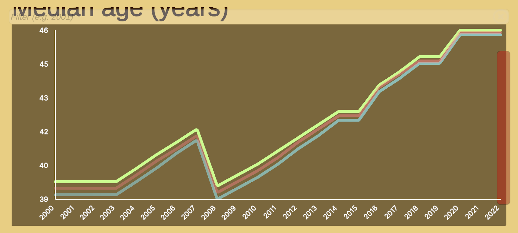 Quando vengono selezionati diversi anni, vengono visualizzati grafici a linee con l'evoluzione delle categorie/paesi selezionati.