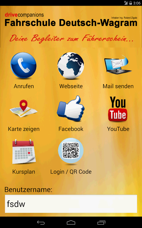 Utilizzare l'applicazione alla scuola di guida tedesca Wagram a venire in contatto con la scuola guida.
