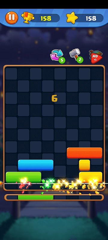 Puzzle in caduta con blocchi colorati che vengono spinti verso l'alto dal basso. Devi spostare un blocco orizzontalmente a sinistra oa destra, se c'è spazio sotto di esso, il colpo magico cadrà.