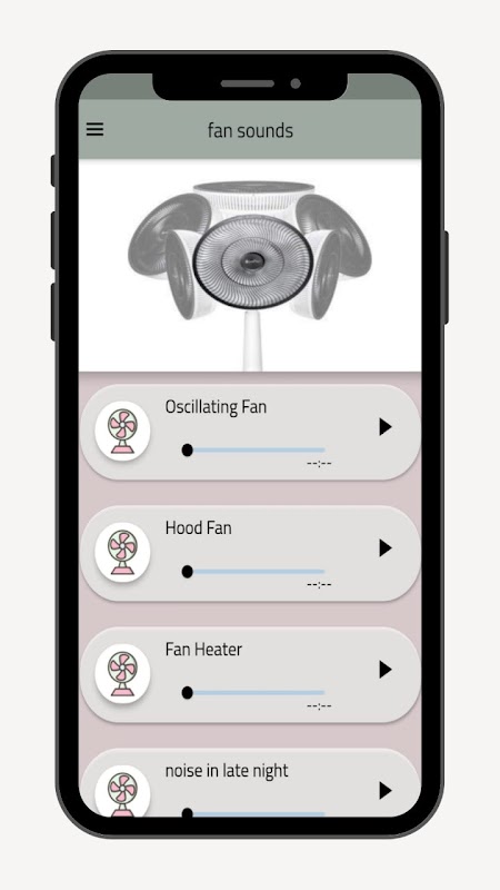 l'app contiene suoni di ventole per rilassarsi e dormire