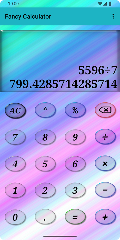 Questa app gratuita Fancy Calculator fornisce l'interfaccia utente più semplice, moderna, intelligente ed elegante per gestire gratuitamente la maggior parte dei calcoli matematici che utilizziamo nelle nostre attività quotidiane. Funziona alla grande e ben progettato con infiniti nuovi look ogni volta che tocchi lo schermo dei risultati di questa elegante app calcolatrice, quindi ora risolvere equazioni matematiche non sarà mai più noioso. Questa elegante app per calcolatrice è una delle scelte migliori per coloro che sono alla ricerca di una semplice calcolatrice con molto divertimento nei propri dispositivi telefonici e tablet.