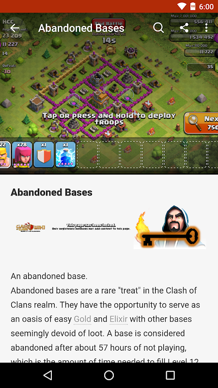 Fandom's app for Clash of Clans-created by fans, for fans. The Clash of Clans app always features highly-accurate, real-time information from Fandom's passionate community of fans. You can expect to see hundreds of pages of content created by fans just like you. Find articles on spells, troops, resources, game mechanics, strategies, guides and much, much more! No other app offers this combination of companion features that allow you to:
