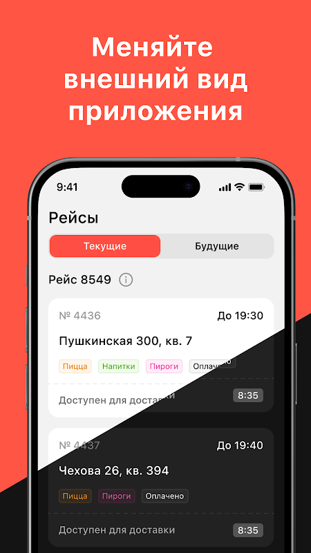 - Visualizza le tue statistiche per un turno: cronologia delle consegne, chilometri, nonché stipendio e dettagli