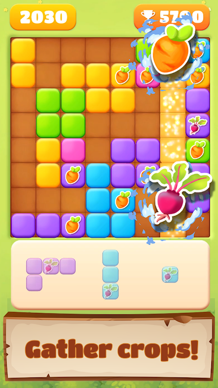 Avvincente gameplay di posizionamento dei blocchi: sfida le tue abilità spaziali posizionando con cura una serie di blocchi a forma di verdura sul tabellone di gioco 8x8. Ottimizza il tuo raccolto sfruttando al massimo lo spazio disponibile.