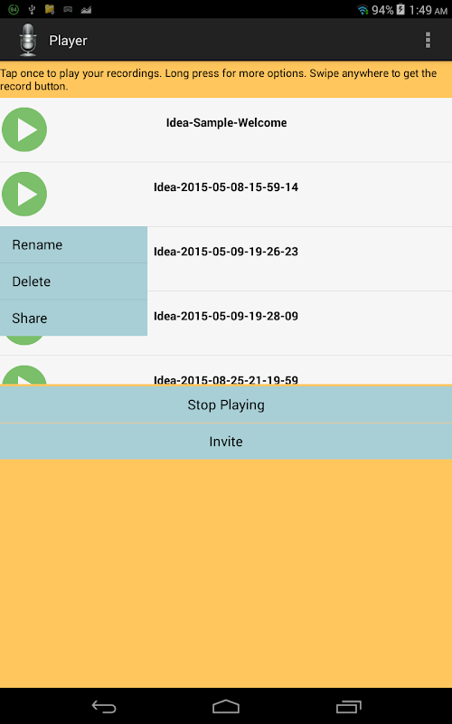 Questa applicazione consente di registrare l'audio istantaneamente e di riprodurli in seguito.
