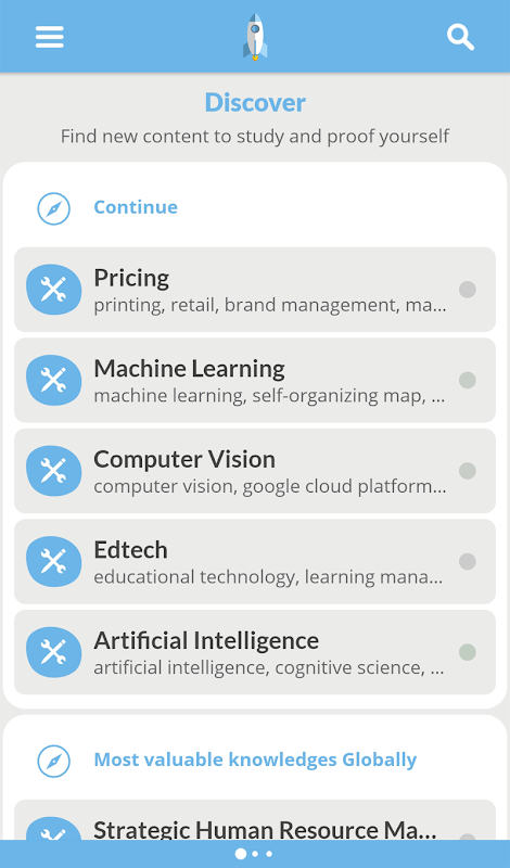 - Start building your knowledge base. There are many free topics available. You can buy coins to open nanodegrees which cover groups of closely related knowledges with their core topics.