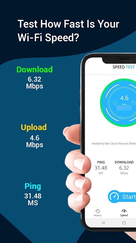 Internet speed test is a good tool of wifi speed test, tests internet speed in just one tap. It tests the speed of WiFi. Speed test app helps to exactly acquire the speed of downloading, ping and uploading.