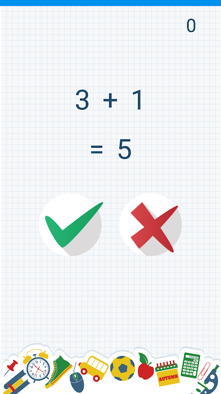 The gameplay is simple, you have to verify if a simple equation is correct or not within the given time depending on the level of difficulty you choose
