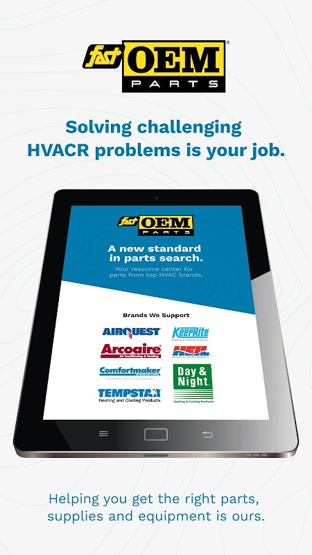 L'app Fast OEM Mobile Tech è stata progettata specificamente per i tecnici che si trovano di fronte a un'unità HVAC. L'app Mobile Tech aiuta i tecnici a individuare i componenti corretti per il lavoro e identifica il distributore FAST più vicino. L'applicazione memorizza i dati in modo da tenere traccia dei componenti utilizzati, semplificando notevolmente la compilazione della documentazione una volta tornati in ufficio.