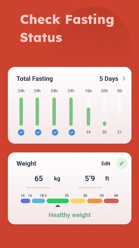 Tieni traccia e registra i tuoi progressi di digiuno e il peso corporeo e crea piani di digiuno.