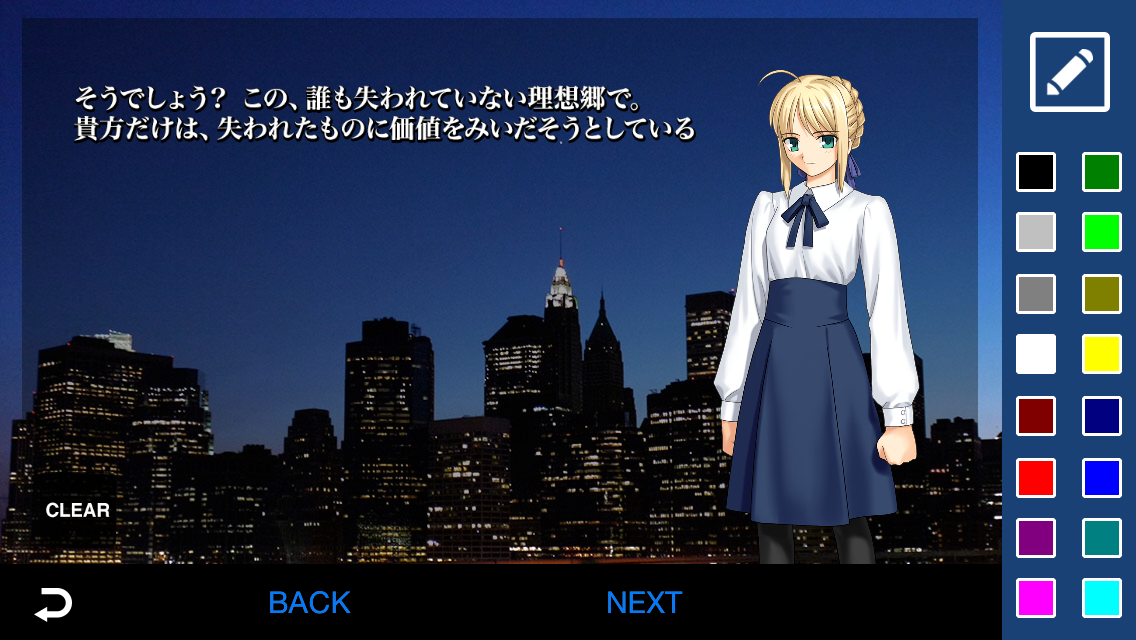 作中に登場するキャラクターや台詞を合成できるカメラアプリです。セイバー、アーチャー、カレンなど、人気キャラクター総勢7名が登場。