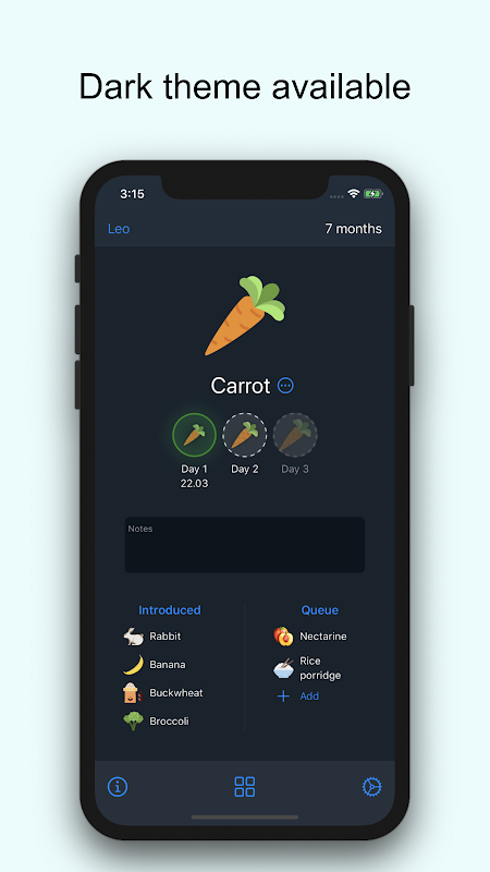 - plan the introduction of complementary foods, composing and changing the queue of products from different categories;