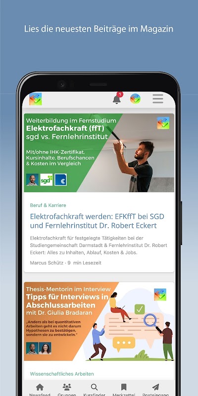 L'app per la formazione a distanza è la tua compagna quotidiana per gli studi part-time e il perfezionamento. Con l'app per la didattica a distanza puoi