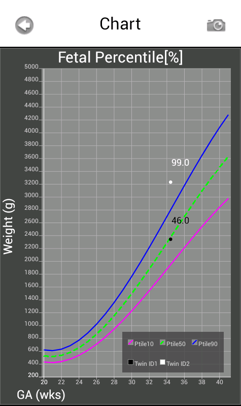 Calcolatrice FetalGrowth e grafico di crescita personalizzato, consente di calcolare e monitorare i percentili di peso fetale sia per Singleton e multiple (gemelli) gravidanze.
