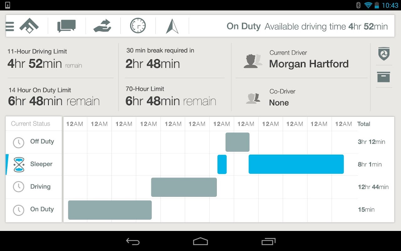 Optional Time Clock functionality is available for keeping track of work time for both drivers and non-driving personnel.