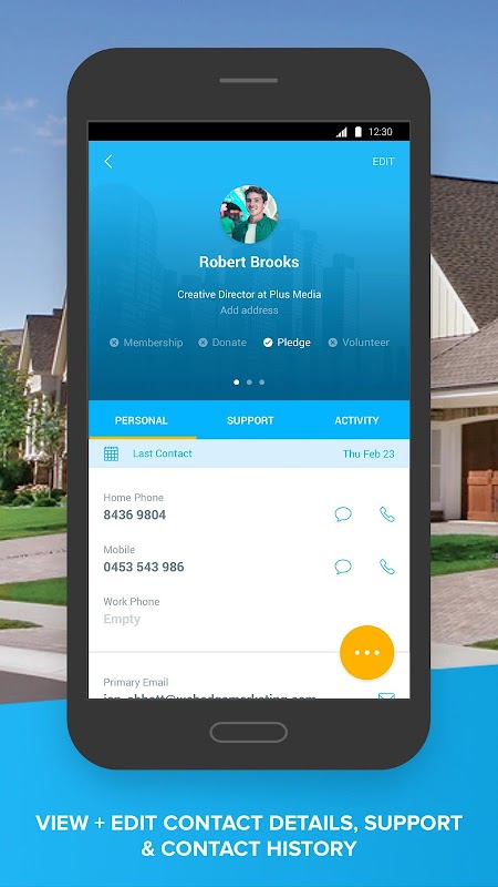 • Log contact, assign tags, change volunteer status, record donations, set support level, add private notes, conduct surveys and person to organization to a list.