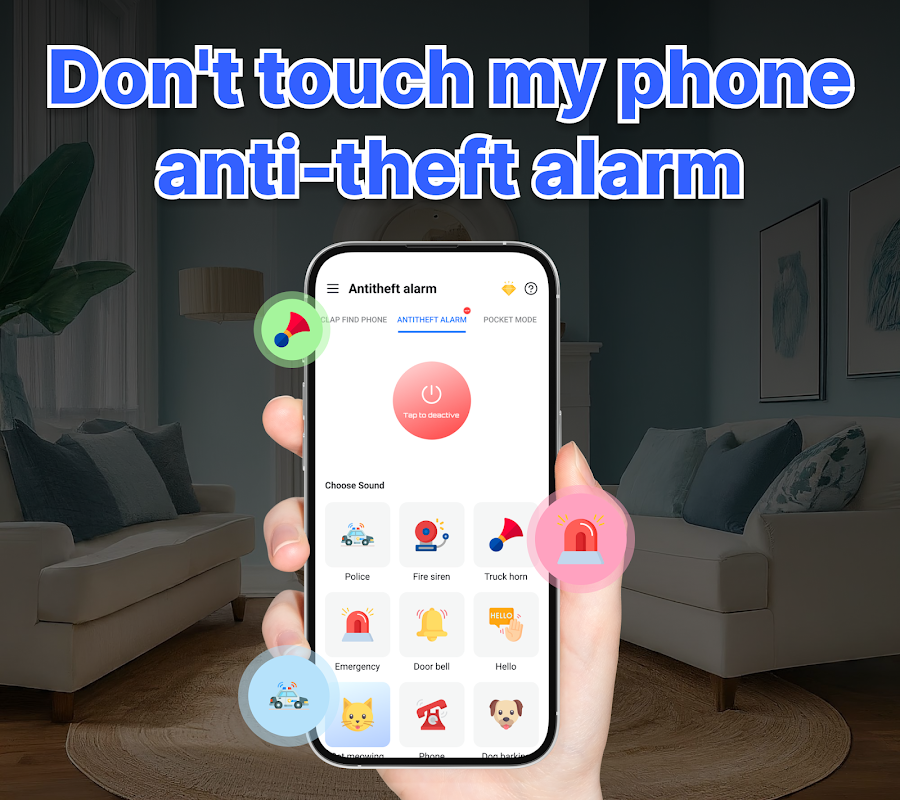 Preoccupato per l'accesso non autorizzato o il furto? Ti abbiamo coperto! La nostra funzione di allarme antifurto attiva un allarme quando qualcuno tocca il tuo telefono senza autorizzazione. 🚨 Personalizza i tuoi avvisi con suoni giocosi, tra cui sirene della polizia, sirene antincendio o allarmi per allontanare potenziali intrusi. Ciò garantisce che i tuoi dati personali rimangano al sicuro mentre ti rilassi e ti godi l'ambiente circostante! 😌❤️