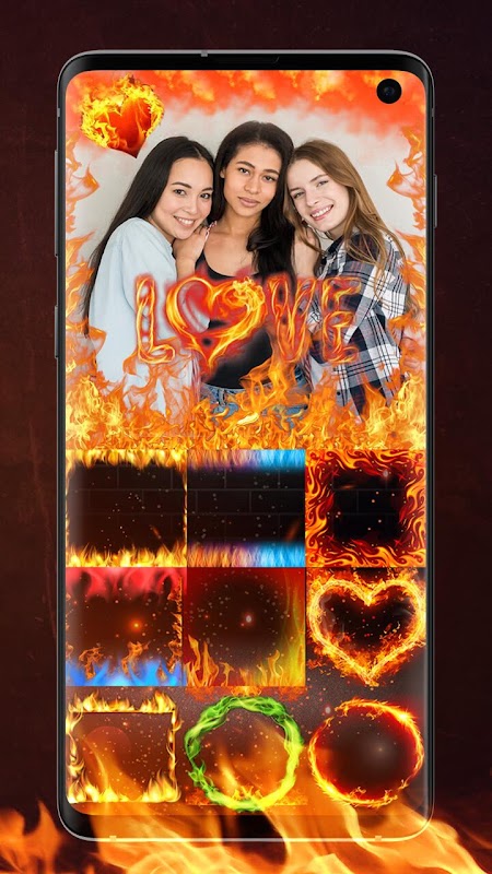 Attira gli adesivi con questo editore di foto e prova gli effetti di fuoco gratuiti sulla foto per ottenere effetti di fuoco realistici e effetti di fotoincisione. Scopri gli effetti del fuoco per le foto e usa questa cinepresa d'azione per creare i tuoi sfondi di fuoco. Il nostro editore di foto dal vivo ha effetti speciali, cornici per foto, cornici per foto di fuoco e altri effetti superpotenti, effetti speciali per film d'azione, filtri antincendio, effetti magici, adesivi fotografici e molto altro ancora. Aggiungi effetti di fiamma per le immagini e modifica le foto con Fuoco Effetto Foto Editore - Adesivi Fuoco. Questo editore di foto trasforma la tua fotocamera in una fotocamera ad effetto, in modo da poter aggiungere cornici alle tue foto. Provale subito!