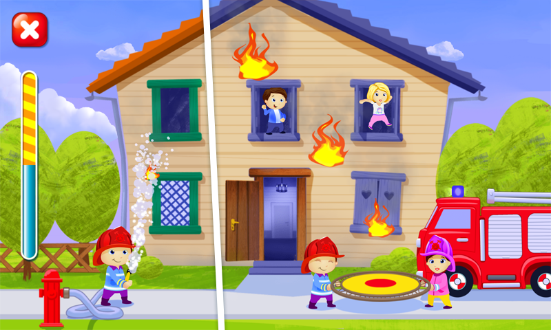• diventa il controllore in ufficio, scivola lungo i pali e prepara il camion dei pompieri