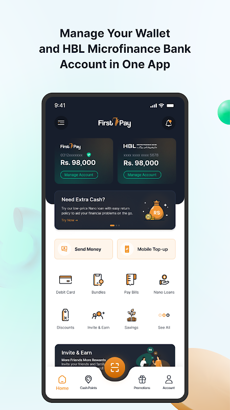 FirstPay, un portafoglio mobile gestito da HBL Microfinance Bank, è qui per darti una vera attività bancaria oltre l'esperienza della filiale. Con un solo tocco, ora invia e ricevi denaro, collegando l'account HBL Mfb, accedi a un prestito con piani di pagamento flessibili, paga le bollette e ottieni ricariche mobili per qualsiasi rete, ovunque e in qualsiasi momento!