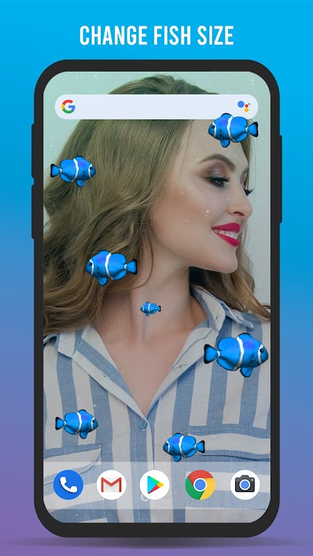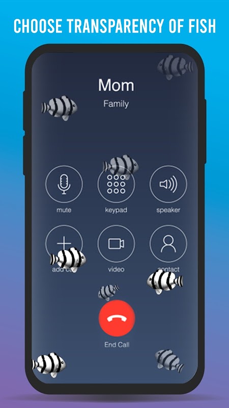 Pesci su schermo è appositamente creato per visualizzare animazioni molto realistiche di pesci sullo schermo del telefono. Si può giocare una partita, guardare un film e navigare in Internet con il movimento di bei pesci sullo schermo del cellulare.