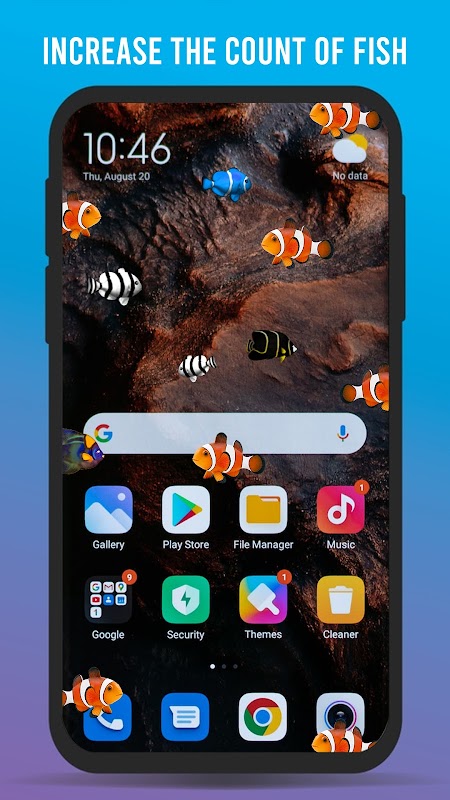 Dopo l'installazione, toccare su “Service” e il pesce inizia a muoversi sulle applicazioni in esecuzione. Se si desidera cambiare il tipo di pesce o di direzione, andare a “Impostazioni”, troverete molte opzioni come “tipo di pesce”, “dimensioni dei pesci”, “direzione di pesce”, “trasparenza pesce” e “conteggio di pesce” e scegliere il proprio ambientazione. Infine, si vedrà belle pesci galleggianti sullo schermo del cellulare.