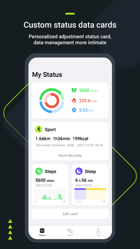 3. Nell'app, i dati di frequenza cardiaca, pressione sanguigna, ossigeno, sonno ed esercizio misurati dall'orologio HJ08 dell'utente verranno trasformati in una tabella statistica che l'utente può visualizzare;