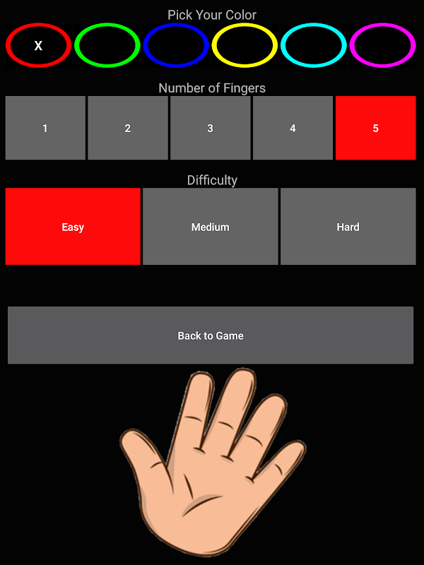 Puoi anche regolare il livello di difficoltà del gioco cambiando il numero di dita. Mentre puoi mettere 5 dita contemporaneamente, hai anche la possibilità di mettere meno dita.