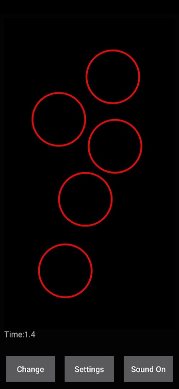 Un timer conta a partire dal momento del primo tocco, fino a quando tutti i cerchi vengono toccati contemporaneamente. Puoi ripetere lo stesso schema più volte. Quindi puoi giocare con i tuoi amici per verificare quale mette il dito più velocemente.