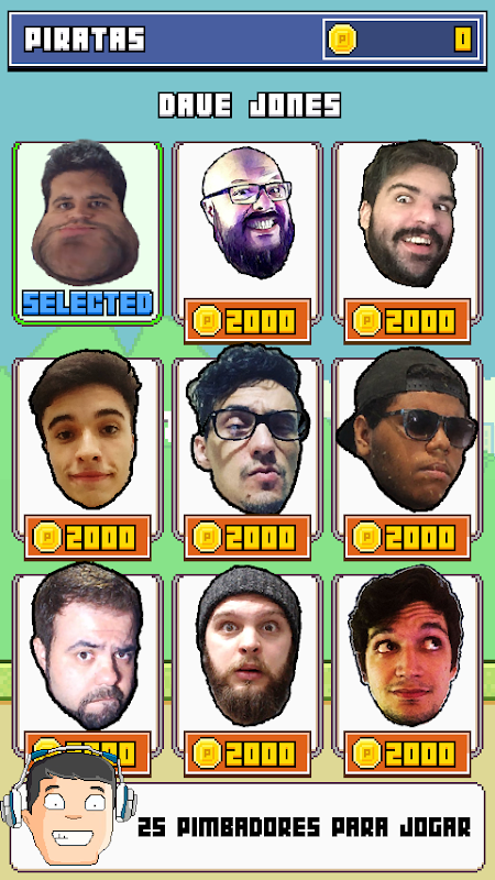 Jogue com Davy Jones do canal GameplayRJ e mais outros 24 personagens entre Piratas, YouTubers e memes. Entres eles estão: