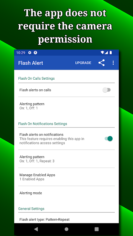 Questa applicazione utilizza il flash della fotocamera per inviare avvisi flash quando ricevi una chiamata o notifiche.