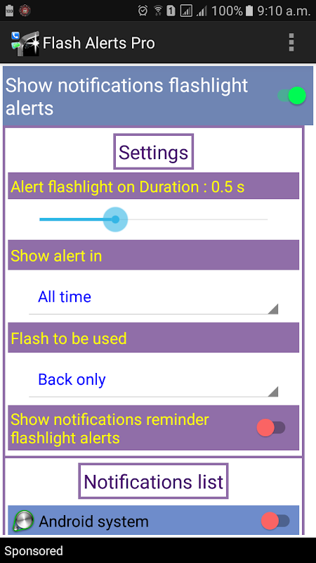 Questa fantastica app può migliorare la tua produttività e il tuo stile di vita, ora hai un nuovo modo per essere informato su tutto ciò che hai scelto, ora hai suoni, vibrazioni e Flash Alerts Pro aggiunto una leggera notifica e in un modo molto personalizzabile.
