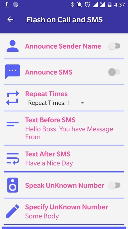 Caller Name Announcer è altamente applicabile in situazioni come se si guida e il telefono è in tasca o qualcuno ti invia un SMS mentre il telefono è in un'altra stanza. Questo id chiamante comunicherà con l'annunciatore del nome del chiamante o il nome del mittente sms che risveglierà la tua mente. L'annunciatore del nome del chiamante annuncia ogni cosa mentre qualcuno ti chiama o ti manda un messaggio, lo identificherai senza guardare al tuo smartphone. L'annunciatore del nome del chiamante annuncia il nome del chiamante con questa app di chiamata nell'istante in cui ricevi una chiamata in arrivo o messaggi di testo SMS.