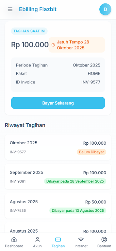 Flazbit Ebilling è l'app ufficiale di Flazbit Ebilling, progettata appositamente per voi, i nostri fedeli clienti del servizio internet. Con questa app, potete gestire il vostro servizio internet in modo più semplice, rapido e pratico, direttamente dal vostro telefono.