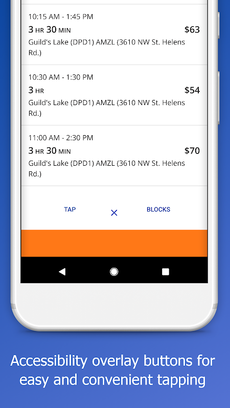 Un servizio di accessibilità per Android progettato rende il processo di selezione dei blocchi all'interno dell'app Flex più semplice e intuitivo. Con i pulsanti di accessibilità affiancati toccando per blocchi diventa molto più conveniente e naturale. Non è richiesta un'estensione eccessiva delle mani o un tocco innaturale. Il comodo posizionamento del nostro pulsante di accessibilità consente l'uso dei pollici per aggiornare e afferrare i blocchi mentre si presentano. Oltre ad accettarli.